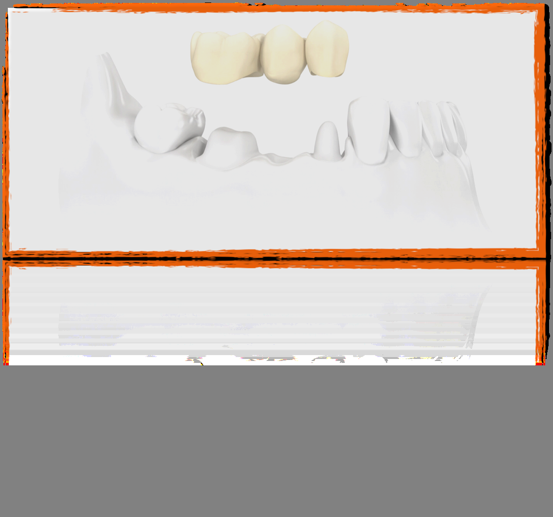 Inconvénients : Le bridge est un sytème monolithique non autonome. Il est donc nécessaire de s’appuyer sur des dents supports (appelées piliers) pour remplacer la dent absente (appelée intermédiaire).